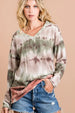 This brushed tie dye print V-neck top delivers contemporary style with tactile appeal. The soft, brushed fabric provides comfort throughout the day, while the distinctive pattern makes a confident statement. The V-neckline offers refined elegance to an otherwise casual silhouette, making it equally suited for weekend outings or layered styling. Versatile enough to transition across seasons and occasions, this piece pairs effortlessly with denim, skirts, or tailored bottoms for a polished yet relaxed aesthetic.