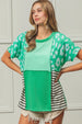 This color-blocked top merges leopard print with striped panels for a contemporary aesthetic that commands attention. Structural exposed seams elevate the design with intentional edge, while the mixed-pattern composition delivers visual interest without overwhelming the silhouette. The balanced proportions between bold graphics and clean lines make this piece equally suited to casual layering or polished styling, offering genuine versatility across multiple contexts and dress codes.