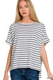Elevate your everyday style with this Zenana Stripe Jacquard Round-Neck Tee, where timeless design meets contemporary flair. The textured jacquard stripe pattern transforms a basic tee into a statement piece that works seamlessly from casual to refined settings. Its classic round neckline and sophisticated fabric texture give you the versatility to dress it down with denim or dress it up with tailored pieces. This is the wardrobe staple that bridges the gap between simple and stylish, offering you endless outfit possibilities without sacrificing comfort or quality.